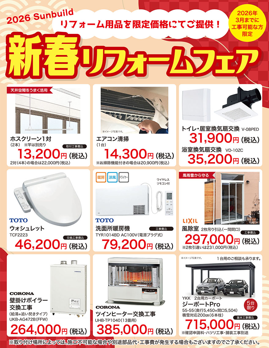 サンビルドでは、リフォーム用品を大特価にて販売中!