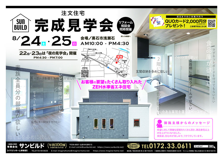 前日までのご来場予約でQUOカード2,000円分プレゼント!
